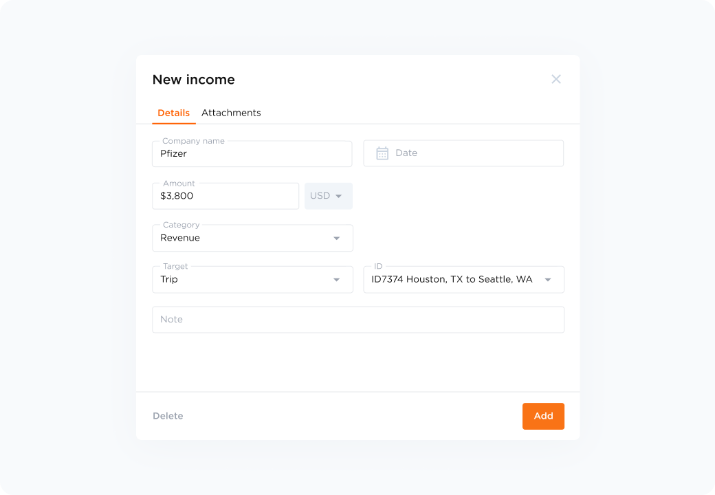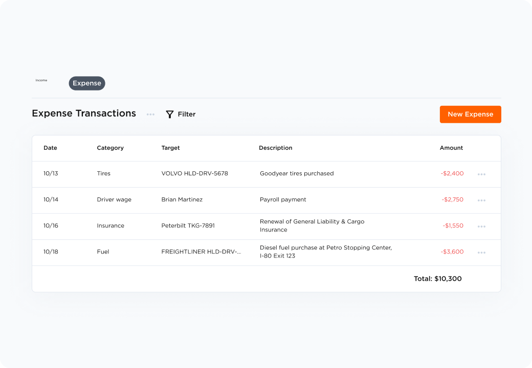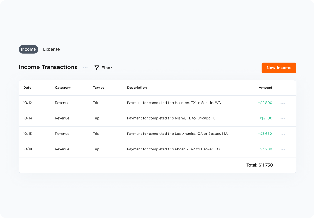 Log all income from your trucking operations