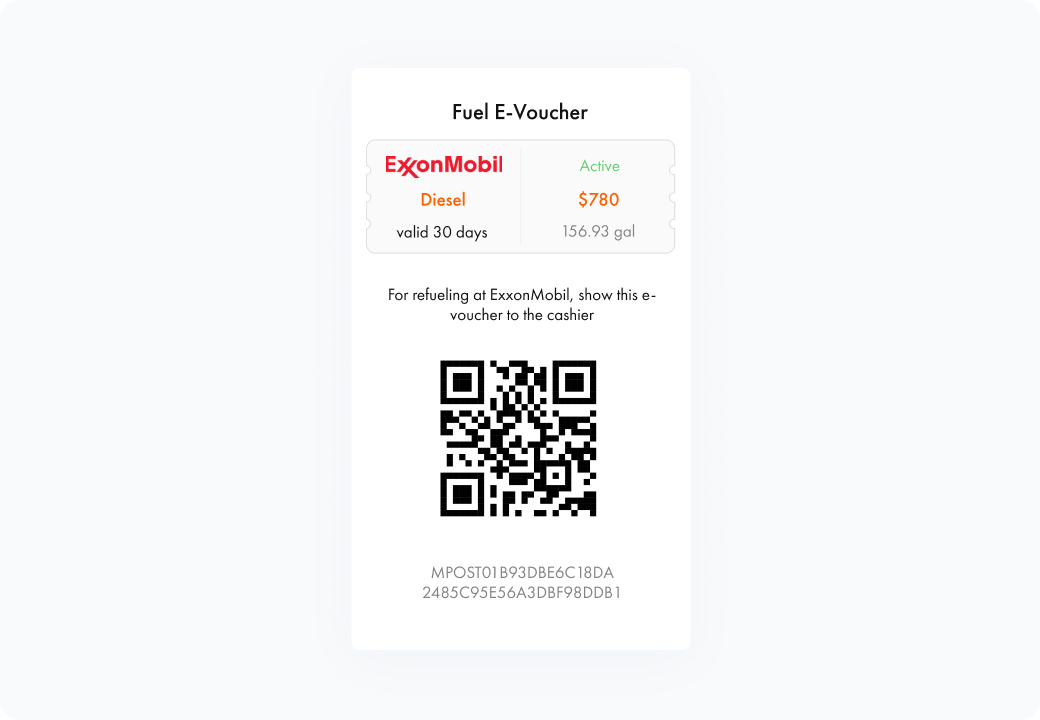 Show e-voucher QR code to cashier for refueling