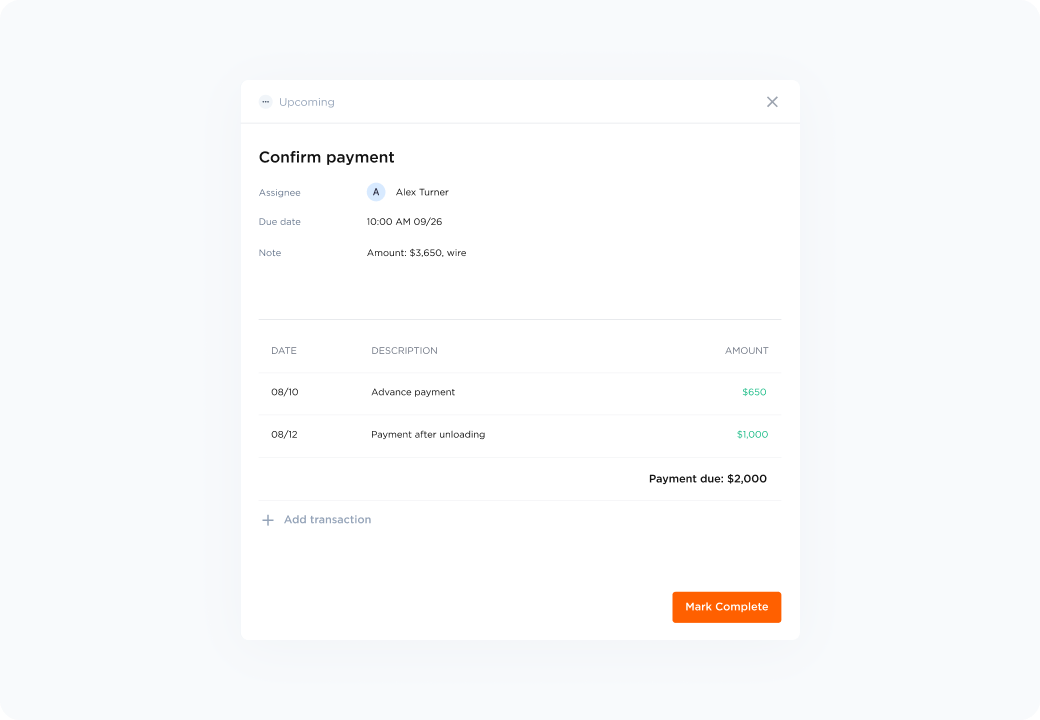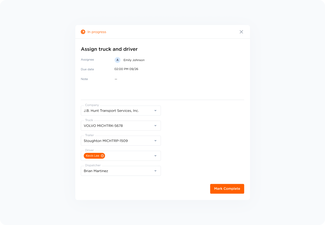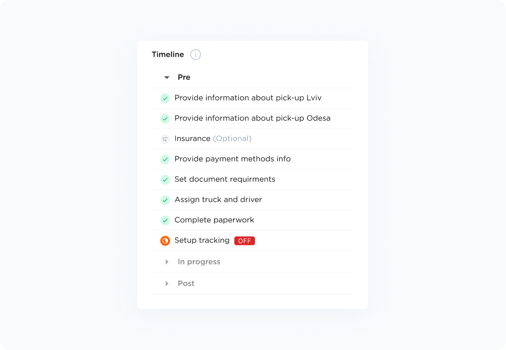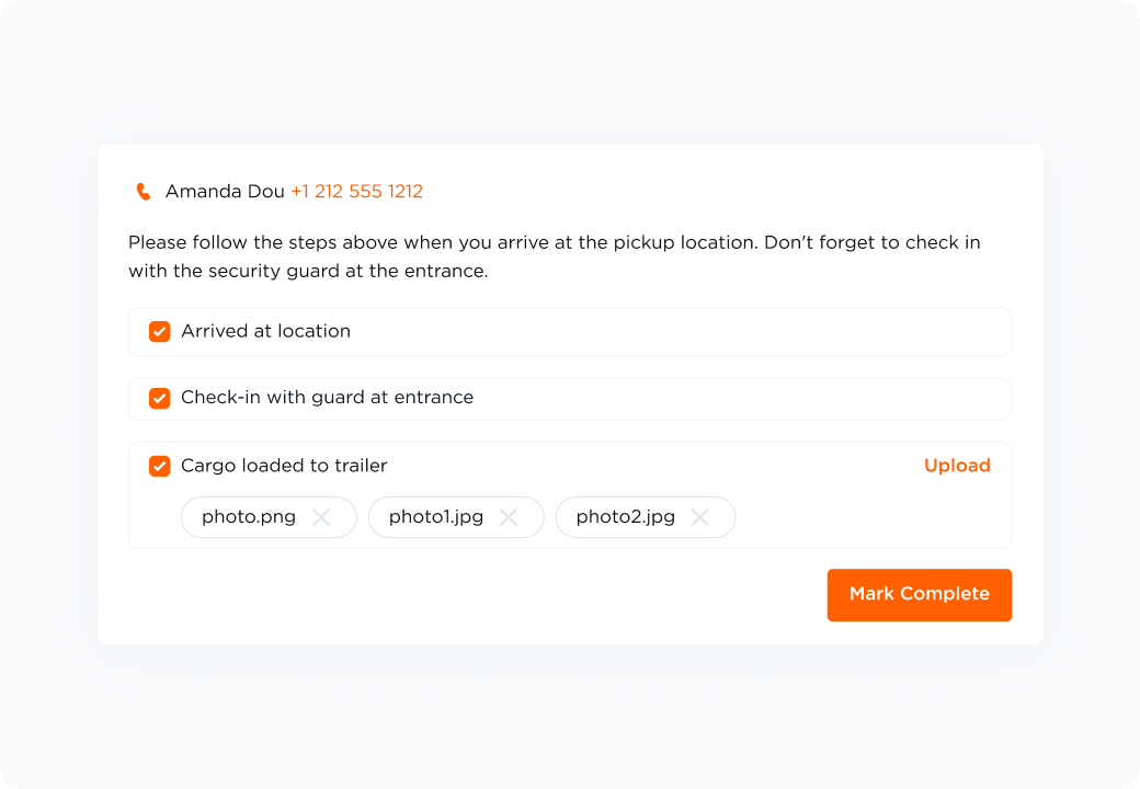 Each checkpoint includes specific subtasks. Drivers can easily complete them using the Cargofy mobile app